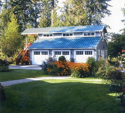VALUE ADDED: This is the first of two homes designed for this family (over the span of two decades). The building shown here was a separate project designed about a decade after the main house which fulfilled the need for an additional garage, a shop, more storage, and an elevated covered deck for viewing of the horseback riding rink (for parents to view the children taking lessons). It was termed the GarageMahal.